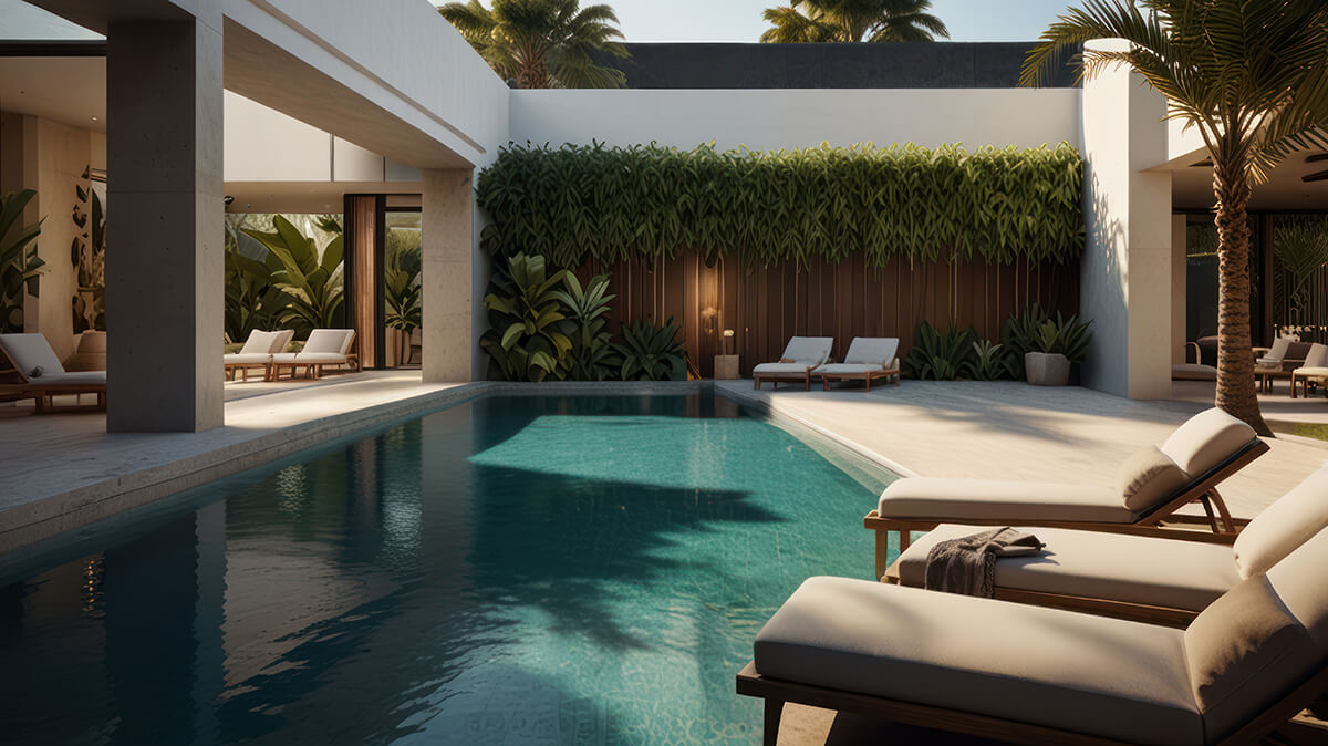 Piscina aquecida com lounges privativos e vista panorâmica.